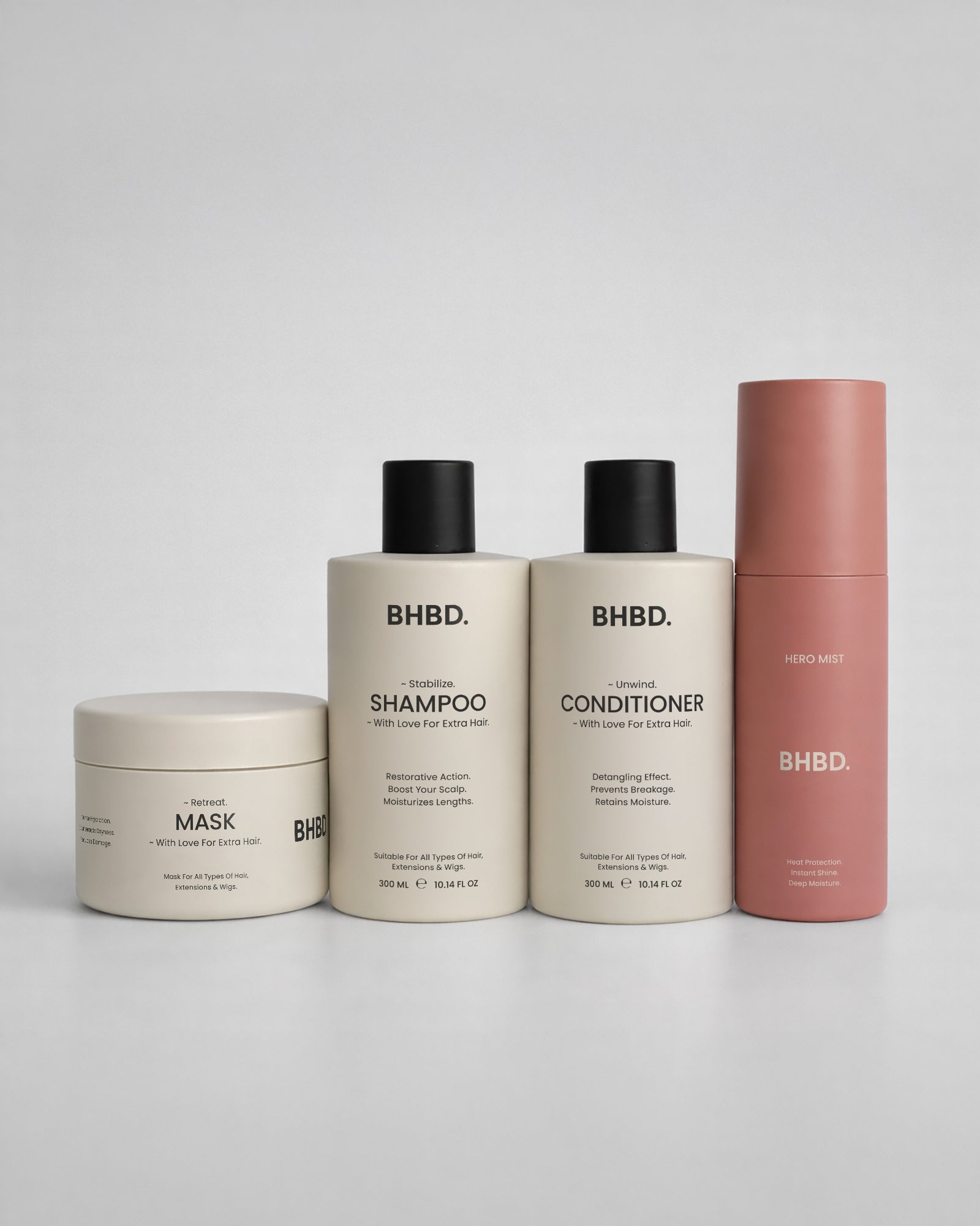 - BHBD Deep Cleansing Shampoo – clarifying och djuprengörande schampo (lanseras snart): Ett kraftfullt clarifying shampoo som ger intensiv djuprengöring. Idealisk för fett hår, styling-buildup eller när håret känns tungt och obalanserat.